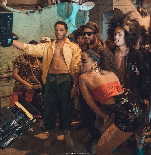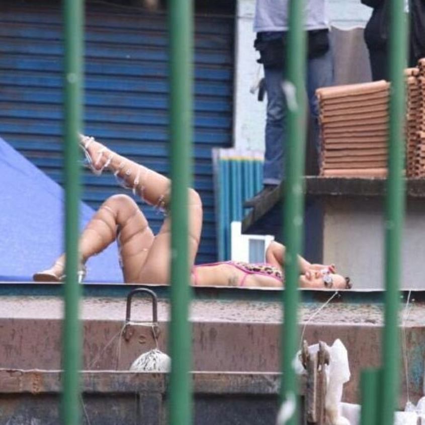 Na tarde desta segunda-feira (21), Anitta relembrou os bastidores da gravação de seu novo clipe Vai Malandra filmado no domingo (20), no Morro do Vidigal, no Rio de Janeiro. No filme, a estrela aparece com um biquíni feito de fita isolante e tranças no cabelo. Além de um colar da grife Chanel no valor de 11 mil reais, segundo informações da Quem.