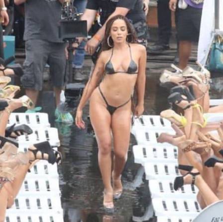 Anitta surge de biquíni na laje e anda de mototáxi em gravação