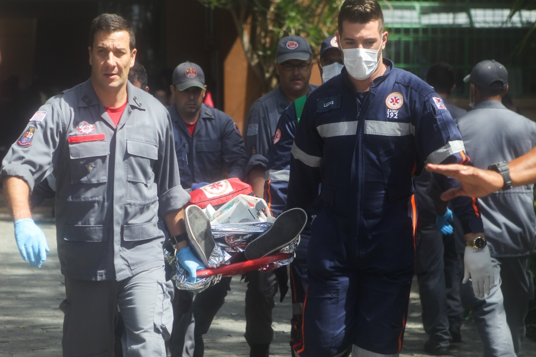 Bombeiros removem vítima de atentado que aconteceu nesta quarta-feira (13), em Suzano